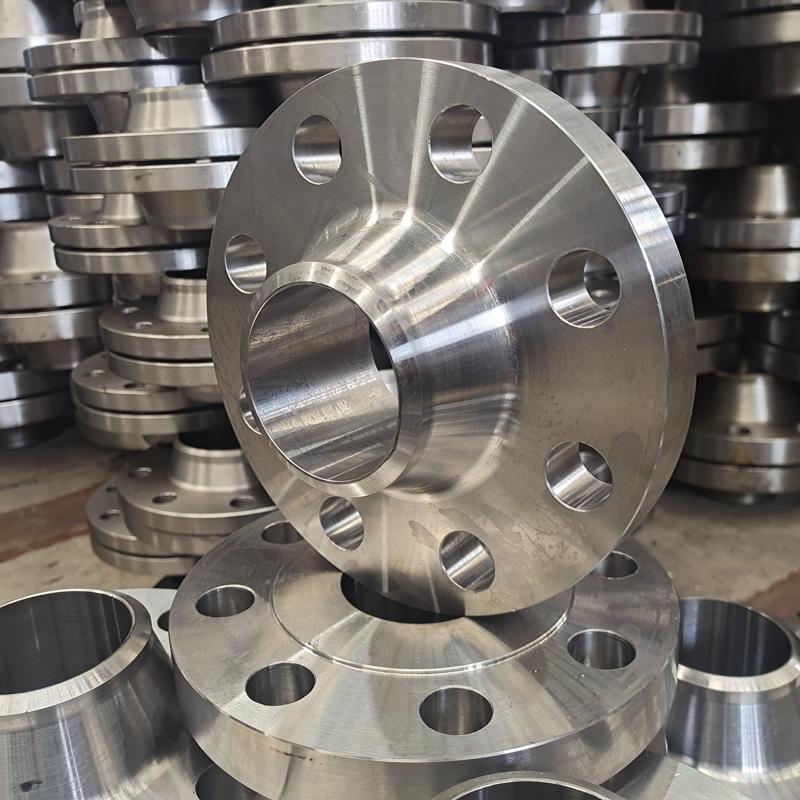 法兰(Flange),又叫法兰凸缘盘或突缘。法兰是轴与轴之间相互连接的零件,用于管端之间的连接;也有用在设备进出口上的法兰,用于两个设备之间的连接,如减速机法兰。法兰连接或法兰接头,是指由法兰、垫片及螺栓三者相互连接作为一组组合密封结构的可拆连接。管道法兰系指管道装置中配管用的法兰,用在设备上系指设备的进出口法兰。法兰上有孔眼,螺栓使两法兰紧连。法兰间用衬垫密封。法兰分螺纹连接(丝扣连接)法兰、焊接法兰和卡夹法兰。法兰都是成对使用的,低压管道可以使用丝接法兰,四公斤以上压力的使用焊接法兰。两片法兰盘之间加上密封垫,然后用螺栓紧固。不同压力的法兰厚度不同,它们使用的螺栓也不同。水泵和阀门,在和管道连接时,这些器材设备的局部,也制成相对应的法兰形状,也称为法兰连接。凡是在两个平面周边使用螺栓连接同时封闭的连接零件,一般都称为“法兰”,如通风管道的连接,这一类零件可以称为“法兰类零件”。但是这种连接只是一个设备的局部,如法兰和水泵的连接,就不好把水泵叫“法兰类零件”。比较小型的如阀门等,可以叫“法兰类零件”